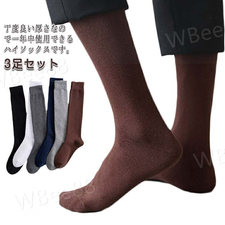 靴下 ソックス メンズ ハイソックス ビジネス 紳士 お洒落 3足セット 社会人 学生 通気性 ストレッチ 足冷え カジュアル