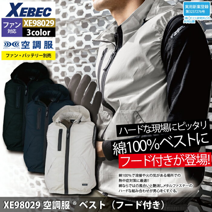 空調服 ジーベック XEBEC 作業服 XE98029 空調服ベスト(フード付き) 4L-5L 春夏用 熱中症 レジャー アウトドア スポーツ 作業着 メンズ ワークウェア