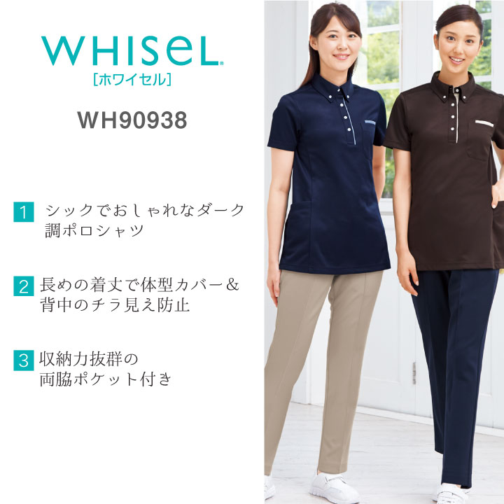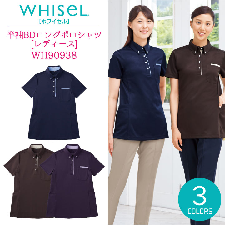 半袖ポロシャツ ロングポロシャツ WHISEL ホワイセル ヘルパーウエア 吸汗 速乾 女性 レディース ボタンダウン ニット スリット 胸ポケット 抗菌 消臭 収納力抜群 ポケット 自重堂 jd-wh90938