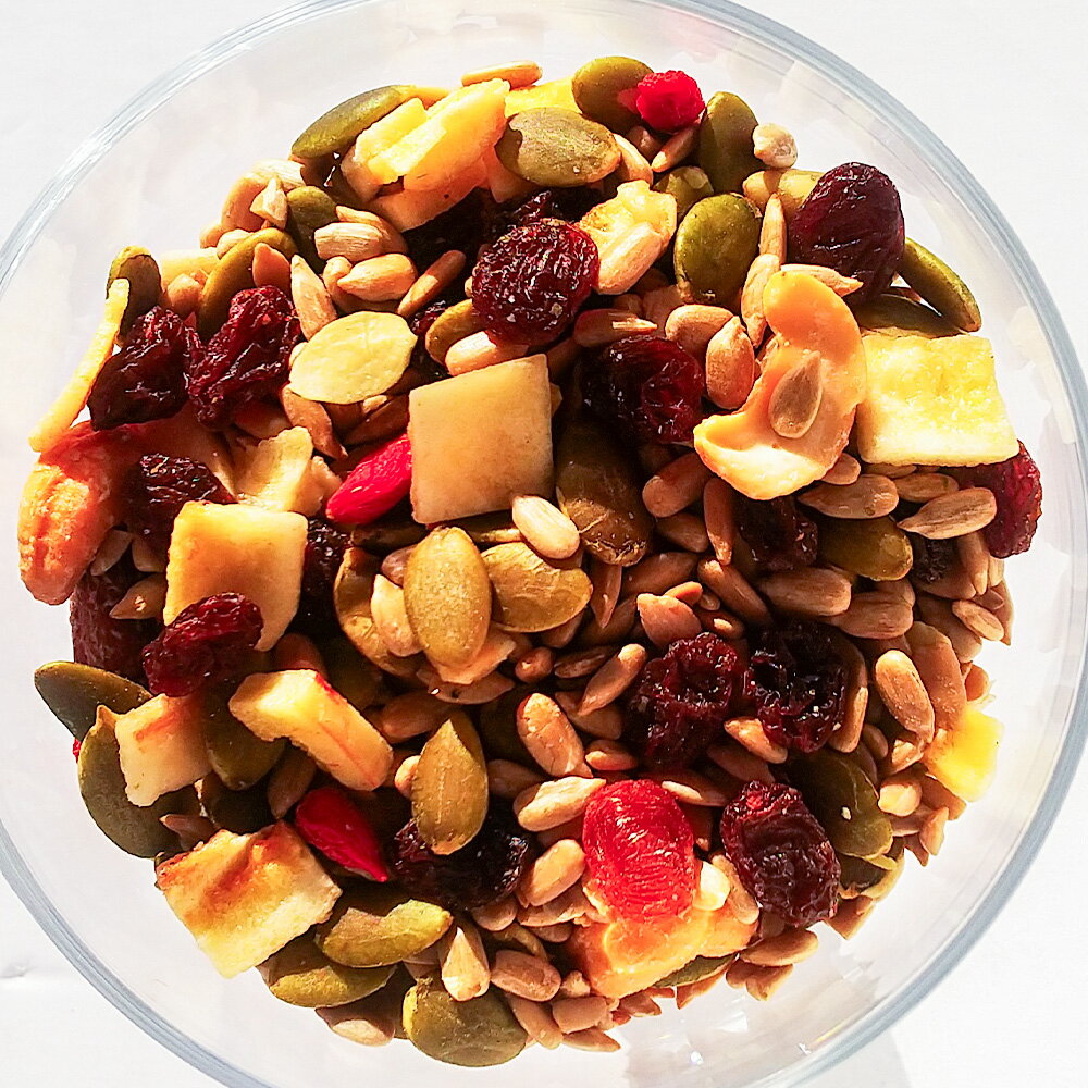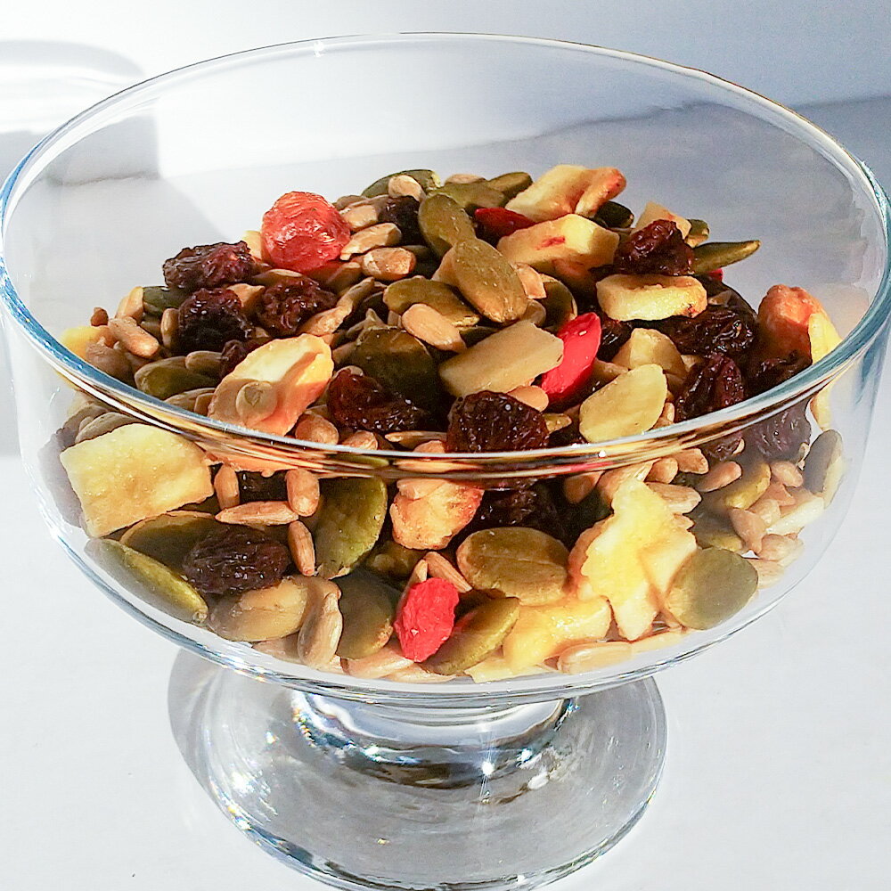 体に嬉しい7種類のナッツ・ドライフルーツ(ひまわりの種、レーズン、かぼちゃの種、バナナチップ、カシューナッツ、アーモンド、クコの実)のミックスです。 おやつ・おつまみとしてはもちろん、お仕事・勉強・スポーツ等でお疲れの方の栄養補給にもおすすめです。 内容量(1袋あたり):125g 原材料:ひまわりの種(ひまわりの種(米国)、植物油、植物油、食塩)、かぼちゃの種(かぼちゃの種、植物油、食塩)、レーズン(干しぶどう、植物油)、バナナチップ(バナナ、ココナッツ油、砂糖)、シュガーカシュナッツ(カシューナッツ、砂糖、植物油)、シュガーアーモンド(アーモンド、砂糖、植物油)、クコの実/香料、(一部にアーモンド、カシューナッツ、バナナ含む) 保存方法:直射日光・高温多湿を避け、保存してください。開封後はお早めにお召し上がりください。 ※この商品は【ポストお届け便】でお届けします。 ○ポストに投函でお届け完了となります。 ○封筒、簡易包装でのお届けとなります。 ○配送日、配送時間帯のご指定はできません。 ○他のご注文商品と同梱はできません。 ○他の商品と一緒にご注文頂いた場合、追加で送料を頂く場合がございます。
