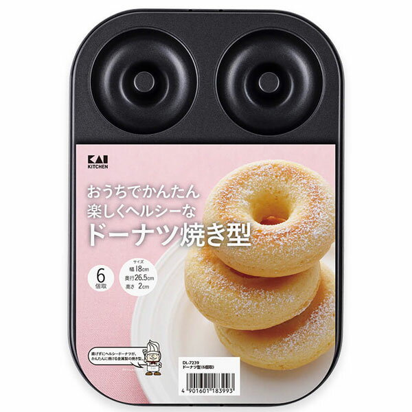 ドーナツ型 (6個取) 貝印 DL7239 / 鉄製 熱伝導 揚げない ドーナツ 焼き型 ヘルシー お菓子作り 製菓用品 製菓型 便利 おやつ /