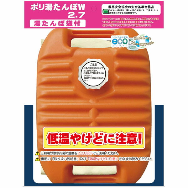 ポリ湯たんぽW 2.7L (袋付) 三宅化学 / 湯たんぽ プラスチック製 オレンジ カバー付き 寒さ対策 冬 /