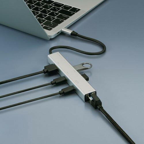 ナカバヤシ UD-C07SL PD対応 Type-C 6in1 スリムドッキングステーション シルバー発売日:2024年4月下旬●持ち運びできるスリム設計映像出力やLAN接続まで、周辺機器を一括接続●USB PD100W※電力の一部を製品内部で消費するため、100Wの充電器に接続した場合85W程度の給電になります。●4K60Hz出力に対応したHDMIポート搭載●ギガビットLAN対応 【仕様】本体寸法:W131×D23×H17mm本体重量:約53gUSB規格:ver.3.2Gen1(3.1Gen/3.0)、2.0インターフェース:アップストリーム(PC側)Type-C(オス)、ダウンストリーム(接続機器側)Type-A メス(USB3.2Gen1)×2、Type-C メス(USB3.2Gen1)×1 ※Alternate Modeには対応していません。Type-C メス×1(PD充電専用)対応機種:Type-C搭載機器対応OS:Windows11,10/macOS10.15以降/chromeOS/iPadOS16以降(Type-C搭載機器)、iOS17以降(Type-C搭載機器)電圧・最大供給電流:5V720mA最大転送速度:5Gbps(理論値 USB3.2Gen1ポート)PD最大電力:100W ※電力の一部を製品内部で消費するため、100Wの充電器に接続した場合85W程度の給電になります。電源:バスパワー映像出力:コネクタ:HDMI(タイプA 19pin)メス×1、対応解像度:最大4K/60Hz、HDCP:1.4/2.2対応LAN規格:IEEE802.3i(10BASE-T)/IEEE802.3u(100BASE-TX)/IEEE802.3ab(1000BASE-T)/IEEE802.3az(EEE)LAN通信速度:10/100/1000Mbps(理論値)LANコネクタ形状:RJ-45(Auto MDI/MDI-X)×1ポート、Auto-Negotiation対応適合LANケーブル:カテゴリー5e以上のLANケーブル(1000BASE-T)、カテゴリー5以上のLANケーブル(100BASE-TX)ケーブル長:約20cm付属品:取扱説明書