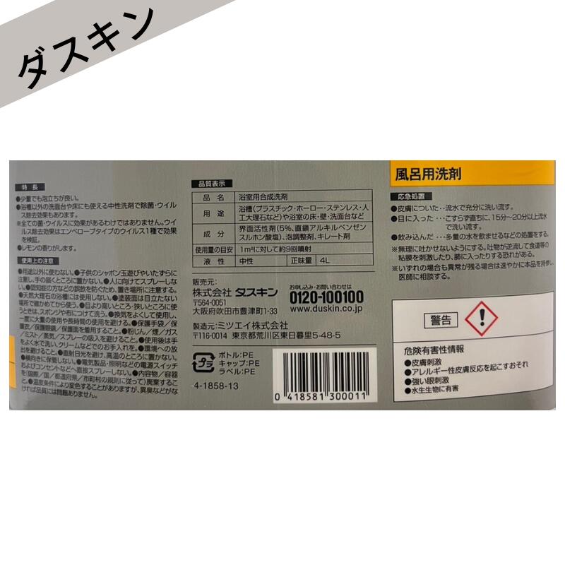 ダスキン 風呂用洗剤 4リットル 地域別 送料無料 大掃除 洗剤 だすきん 業務用 お得 大きいサイズ 風呂 風呂洗剤 風呂掃除 掃除