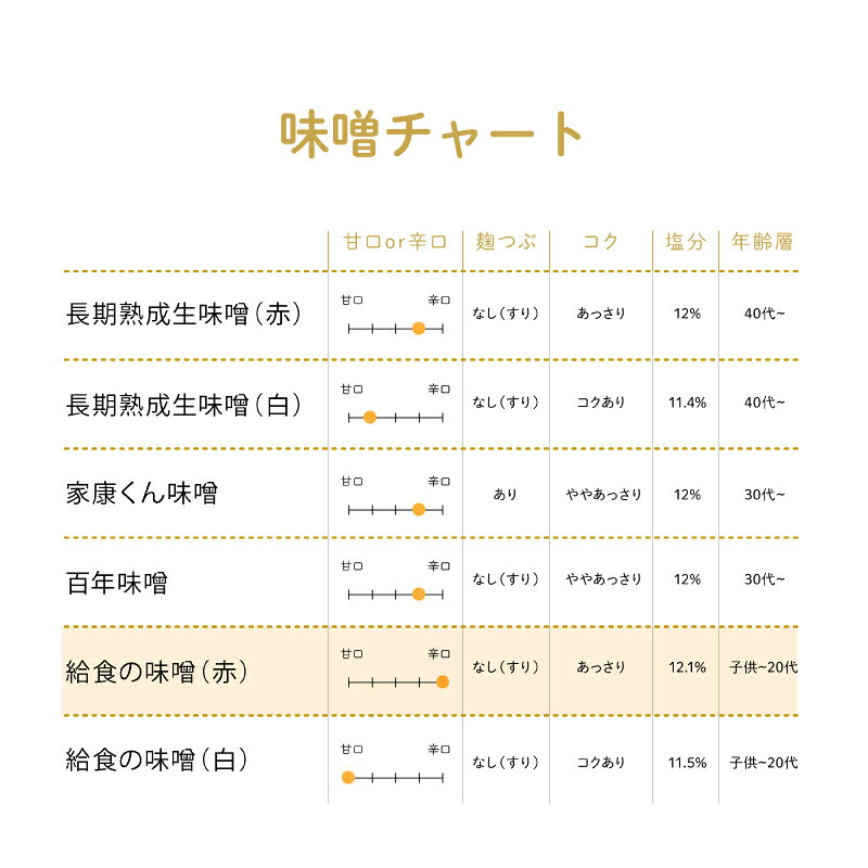 給食のみそ(赤) 内容量:750g 40年以上にわたり、浜松市の100をこえる小中学校で使用されている味噌。塩角が少なく、こくのあるなめらかなすり味噌です。昔ながらの製法で、お子様にも安心して召し上がっていただけます。 ■冷暗所にて保存し開封後は冷蔵庫にお入れください。 内容量:750g →同時購入すると送料無料!発酵ミニセットはこちら! →浜納豆はこちら! →きざみ浜納豆はこちら! →発酵旨味オイルはこちら! 天然醸造 国産 給食 浜松市 老舗 創業170年 備蓄 日本製 大豆 味噌汁 みそしる みそ汁 料理 粒なしみそ すり味噌 米麹みそ 米麹味噌 米みそ 米味噌 麹味噌 こうじ味噌 麹みそ こうじみそ 出汁なし味噌 だしなし味噌 出汁なしみそ 天然味噌 天然みそ 本物の味噌 手前味噌 手造り 味噌作り みそ大豆味噌 みそ手作り 自然味噌 手づくりみそ 米麹の味噌 遺伝子組換えでない 自然食品 木桶仕込み 長期熟成 天然醸造 調味料 ギフト 麹 化学調味料無添加 思い出の味 どうする家康 舞台 和食 トン汁 豚汁 とん汁 田楽 味噌田楽 みそ田楽 サバの味噌煮 さばの味噌煮 さばみそ 酢味噌 酢みそ 煮込み 焼く