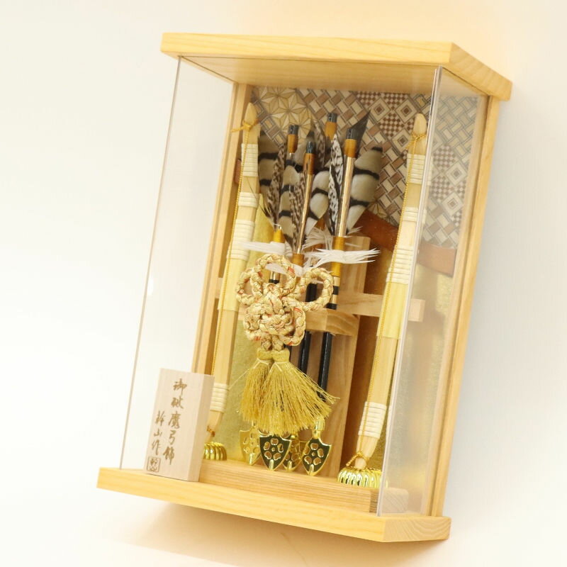 破魔弓 壁掛け飾り 絃 額 高さ26cm 壁掛け可 白木アクリルケース (2025-ts064) 額飾り お正月飾り 日本の伝統文化