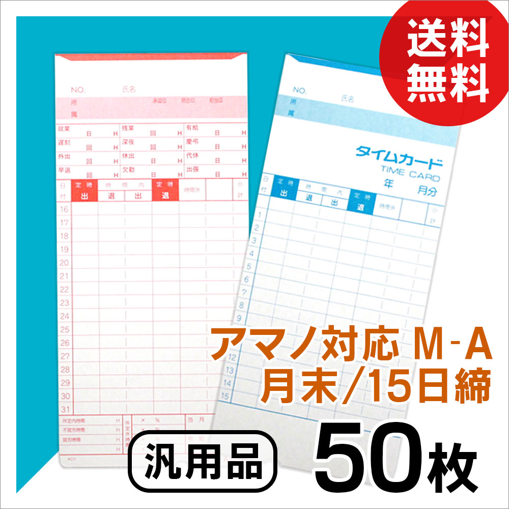 アマノ用 タイムカード Aカード対応 汎用品 M-A(月末/15日締)50枚