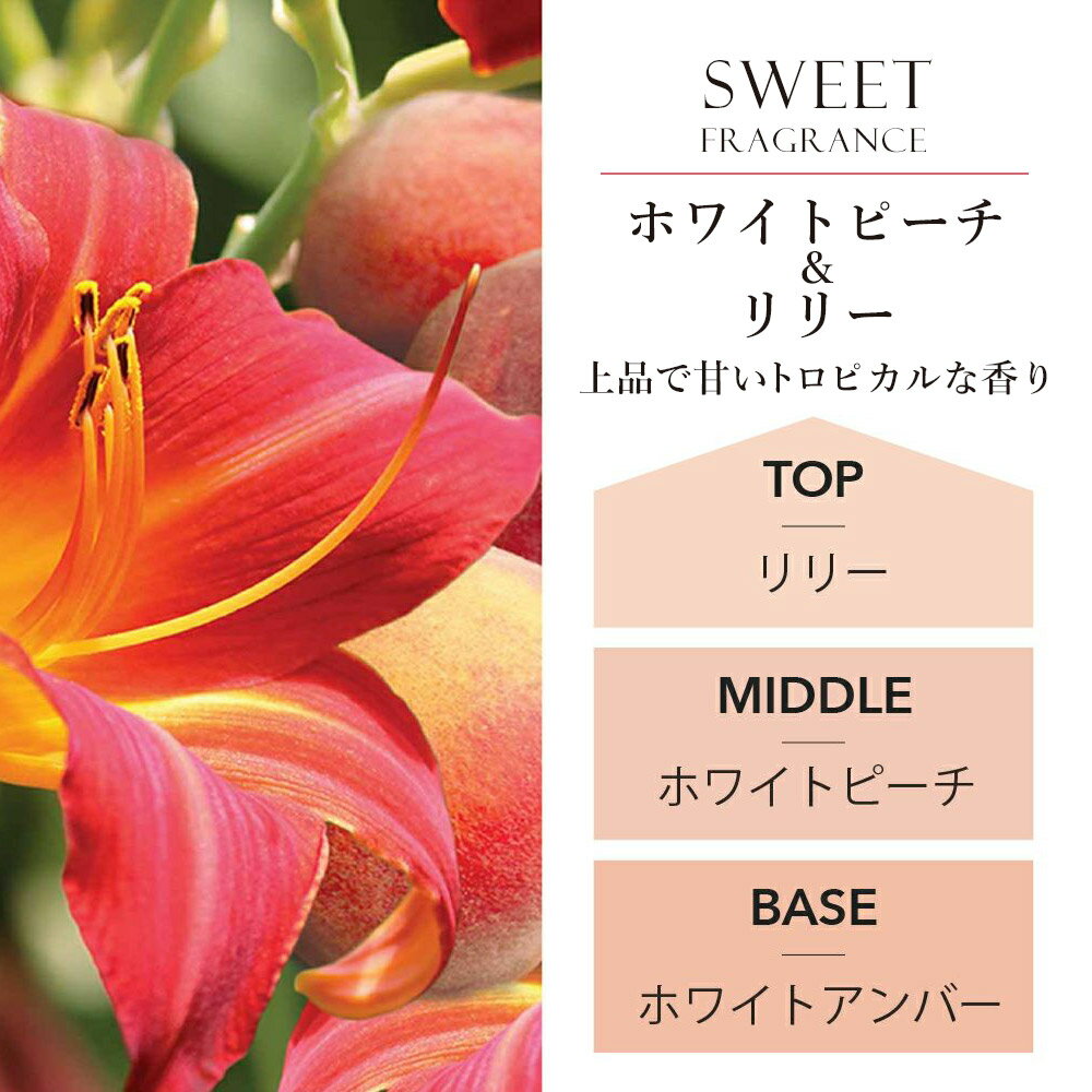 『白桃のピュアな甘さに、可憐で上品なユリを加えたトロピカルな香り。』 フレグランスランプはただ芳香を楽しむだけでなく、空気中の有害なバクテリアを除菌・消臭し、更に抗菌効果を高め、心地よい空間へ導きます。 ■正式認可を受けている(USA) AIHAラボラトリー(ISO17025)による「除菌」と「消臭」の実証データ ≪30分使用後≫タバコの臭い99.9%除去 ≪90分使用後≫アレルギーを誘発する空気中のハウスダストダニ類99%除去 ≪3時間使用後≫バクテリア99%除菌、カビ胞子60%以上除菌、食べ物の臭い68%消臭 内容量 500ml 持続時間 20時間 香りのピラミッド TOP:リリー MIDDLE:ホワイトピーチ BASE:ホワイトアンバー 香りのタイプ Sweet(スウィート) 使用方法 専用ランプボトルに入れてお使いください。 使用上の注意 肌や衣類につけないようご注意ください。 火気に近づけないでください。 容器が転倒しないよう平らで安全な場所でご使用ください。 高温多湿直射日光を避け、乳幼児の手の届かないところで保管してください。 備考 こちらの商品はAshleigh&Burwood(アシュレイ&バーウッド)のフレグランスランプ専用オイルになります。フレグランスランプ本体は別売りとなります。 リニューアルに伴い予告なく、パッケージやキャップ等の仕様が変更となる場合がございます。 本製品は天然の植物を原料として作っております。そのため同じ香りでも生産する時期によって植物の状態が異なることがございます。その結果、フレグランスオイルの色味が生産時期や生産ロットによって変わる場合がありますが、香りや品質には問題ございませんのでご安心ください。 フレグランスオイルの原料となっている植物の成分が浮遊物となりオイルに含まれる場合がございます。香りや品質に問題はございませんのでご安心ください。 配送方法 宅配便 ※沖縄・離島 お届け不可 キーワード:リブインコンフォート / ASHLEIGH&BURWOOD / アシュレイアンドバーウッド / イギリス / ロンドン / フレグランスオイル / フレグランスランプ / エッセンシャルオイル / 除菌 / 消臭 / 芳香剤 / アロマ / リラックス / インテリア / ギフト / 癒し / ↓↓ 関連商品一覧はこちら ↓↓ASHLEIGH & BURWOOD [ 芳香&消臭もできるルームフレグランス ] ロンドン発ルームフレグランス 『ASHLEIGH & BURWOOD(アシュレイ&バーウッド)』1993年、アロマの本場・英国ロンドンで誕生。最高品質をお約束するルームフレグランスカンパニーです。 本製品はフレグランスランプと一緒に使用いただく 専用オイルになります。オイルを別売の専用ランプボトルに入れてセラミック芯に火をともし、約2分後に火を消すだけなので、使用も簡単です。 セラミック芯の触媒燃焼(蒸し焼き)による空気清浄作用と同時に、除菌成分が含まれたオイルのアルコールが触媒燃焼を通じて空気中に拡散。芳香を楽しむだけでなく、バクテリアやカビ胞子などに対する除菌作用、空気洗浄、消臭効果を兼ね備えています。 元々は100年以上前に病院の空気清浄を目的に薬剤師によって開発され、芳香・消臭効果を実現しました。 植物由来100%の心地よい香りは、なんと30畳まで広がります。驚きの消臭効果と即効性のある芳香を楽しんでいただけます。 ▼触媒燃焼とは? Ashleigh&Burwoodは火を消した後にも炎を出さずに燃焼を続けます。 このことで空気の流れの悪いところでもゆっくりと燃焼を続けることが可能になり、水回りなど普段閉ざされている空間でもランプを使うことができます。