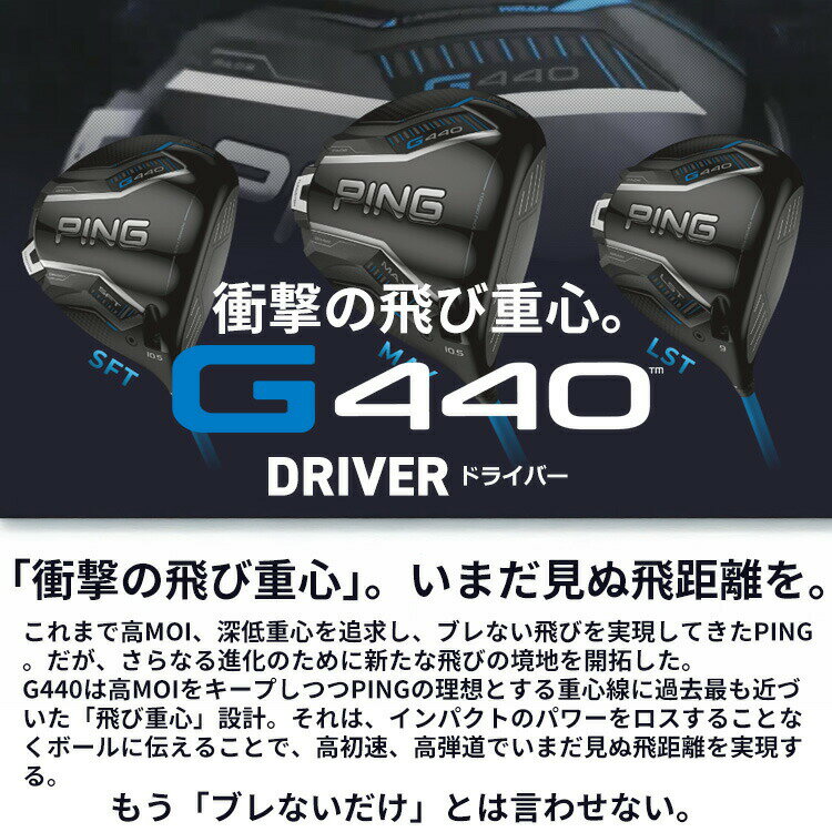 【ゴルフ専用コーティング剤】 ◆ピン 2025 G440 カスタムシリーズ 特集ページはコチラ!◆【カスタムフィッティング】ピン G440 マックス ドライバー【左用】 ATTAS KING カーボンシャフト G440 MAXドライバー 「飛び重心」設計と「高MOI」の融合でブレずに最大飛距離を生み出す PINGが理想とする重心ラインに近づいた「飛び重心」設計でブレずにさらに飛ばせるMAXに。「新カーボンフライ・ラップ・テクノロジー」により、クラウン部分の余剰重量をヘッド下部に再配置しさらなる低重心化を実現。新設計の「フリーホーゼルデザイン」により、ホーゼル周辺の重量が軽減され、PING史上最も低い重心設計となり、高弾道で低スピンの飛びを可能に。 フェースは前作より中心部で約4%、周辺部で約7%薄くなり、飛距離向上に貢献。余剰重量は高比重バックウェイトに配分され、高MOIを実現し、安定した飛びへ。 新しいヘッド形状は、構えやすく振りやすさも向上し、心地よい打音と打感へと進化した新MAXドライバー。 *MOI=Moment of Inertia(慣性モーメント) ≪スペック≫ ロフト角(度) 9 10.5 12 ヘッド素材 FORGED T9S+チタン(フェース) / 811チタン(ボディ) / カーボン(クラウン) ヘッド体積(CC) 460 ライ角(度) 59.5 *総重量(g)・バランス 約301・D3 (ALTA J CB BLUE・SR・46インチ) ※専用レンチは付属します。 ※カスタムフィッティングにより、個々に調整いたします。 ※ 一部商品は特注品となります。ご注文後、多少のお時間がかかることを予めご了承ください。 ※ 表記の総重量・バランスは、あくまでも目安としての参考値となります。 ※ G400シリーズ以前のスリーブとの互換性はありませんのでご注意ください。 ■シャフト: シャフト名 KING 4 KING 5 KING 6 KING 7 フレックス R SR S X R SR S SX X SR S SX X S X 重量(g) 48 49 50 53 56 57 58 59 61 65 66 67 69 73 76 トルク(度) 5.7 5.4 4.3 4.2 3.6 3.5 3.5 キックポイント 先 *標準クラブ長(inch) 45.25 ※シャフトのスペック値は各メーカーの公表値です。 ※「BL無し」はバックライン無し、「BL有り」はバックライン有りとなります。 ※メーカー在庫状況により、終了している場合もございます。 ※PING GOLFの商品は、お客様からご注文をいただいてから すべて日本国内で組み立てを行います。 商品によっては、メーカーでのパーツ欠品等の理由により お届けまで時間がかかる場合がございます。 予めご了承ください。