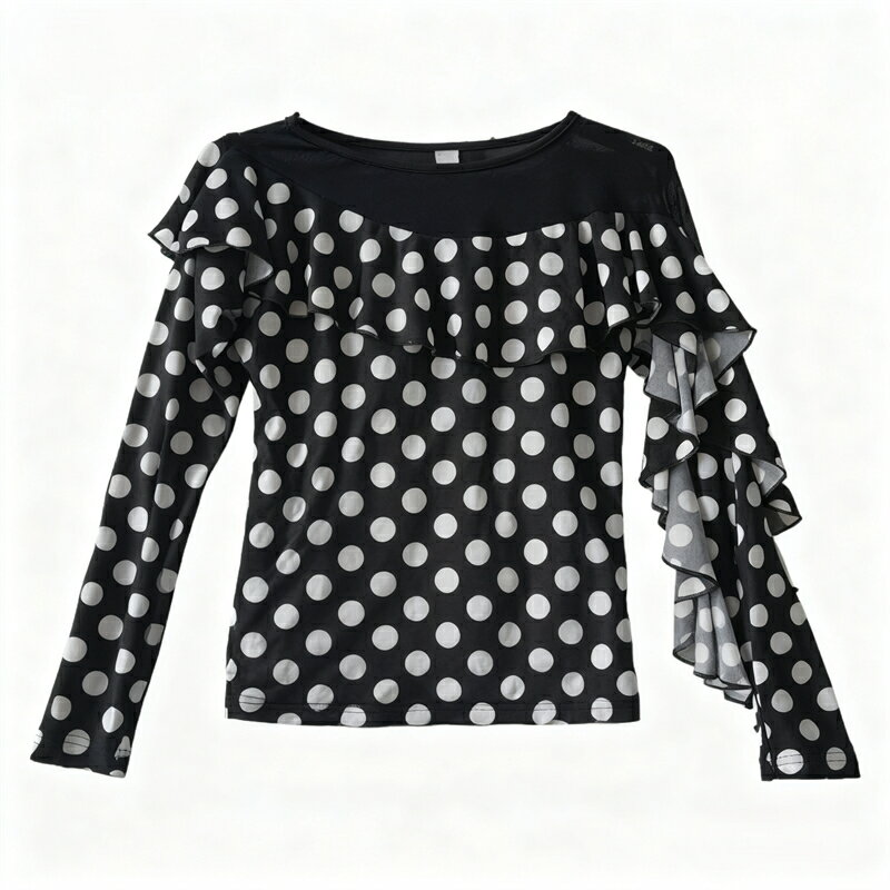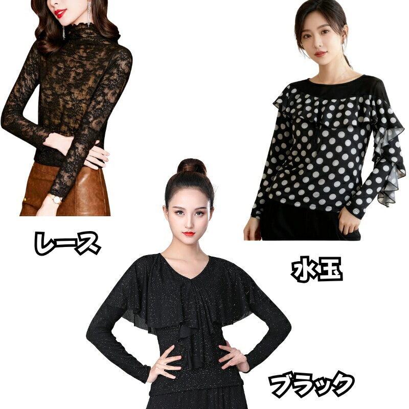 【在庫処理】社交ダンス トップス 長袖 水玉柄 レース 透け感 メッシュ 大きいサイズ レッスン着 日常着 練習着 ダンス衣装 インナー 社交ダンス トップス バレエ トップス ヨガ練習着 ダンス レッスン着 ダンスウェア 踊りブラウス ダンス衣装 痩せラテン衣装 海外通販