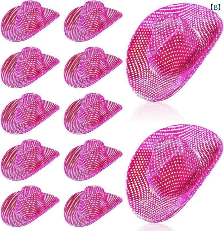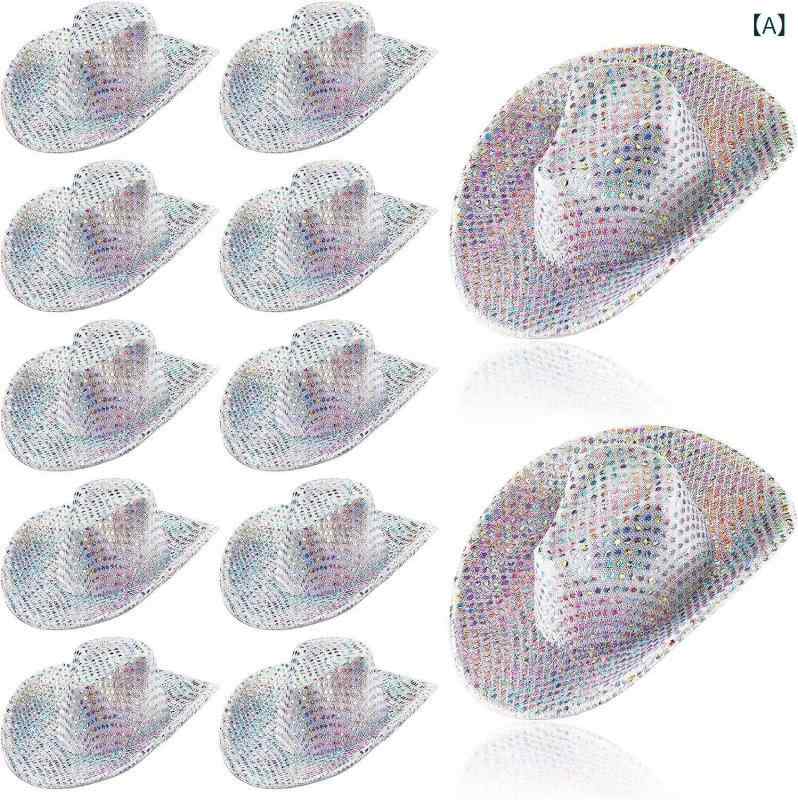 帽子 レディース カウボーイハット テンガロンハット 虹色 ネオンカラー スパンコール キラキラ 派手 かわいい ディスコ パーティー イベント コスプレ 仮装 ストリート(x3)