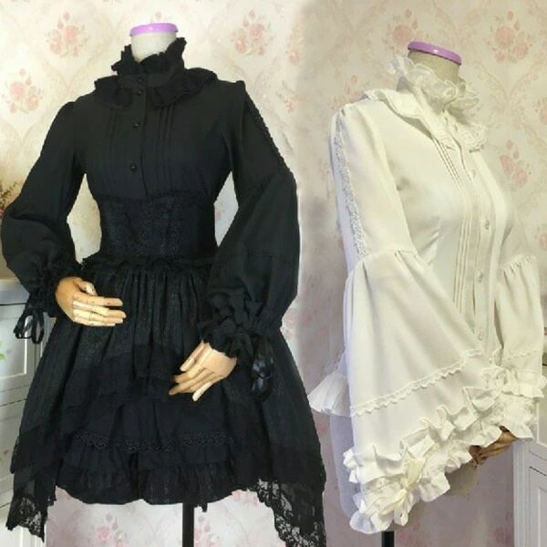 パーティ ダンスパーティー 文化祭 学園祭 かわいい ブラック ホワイト 貴族風 ゴシック パンク 2way シャツ ブラウス ロリータ