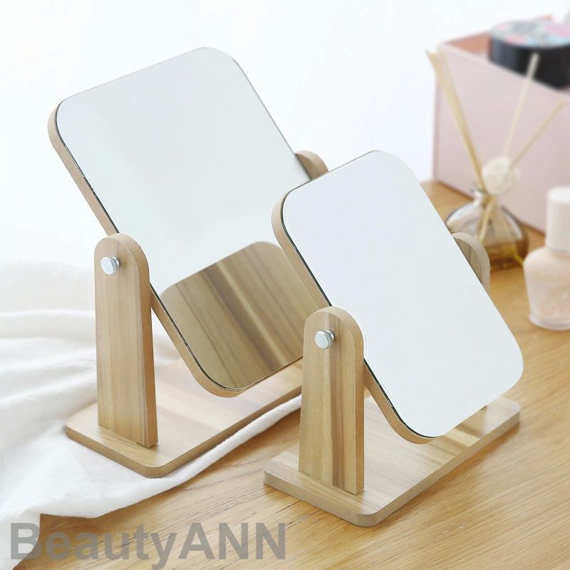 玄関 テーブルミラー 置き鏡 丸い メイク鏡 立て掛け 化粧鏡 スタンド鏡 スタンドミラー かがみ 鏡 角度調節 卓上鏡 角型 木製