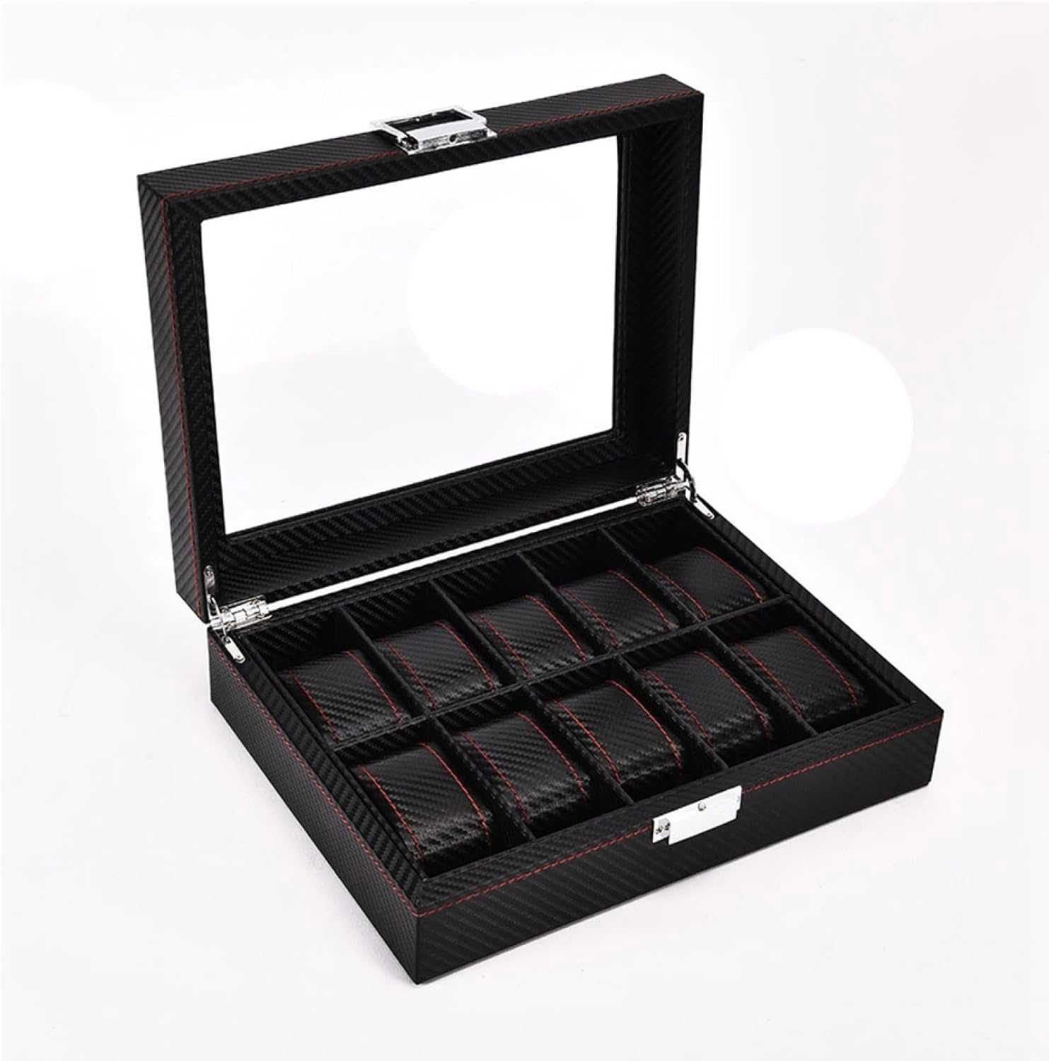 【20%OFFクーポン〜】腕時計収納ケース 腕時計ケース 腕時計収納ボックス コレクションケース ウォッチボックス 高級 ディスプレイケース カーボンファイバー 耐衝撃 PUレザー 腕時計ケース 10本 ブラック
