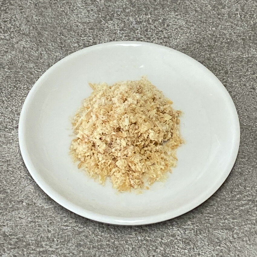 【国産鶏むねフレーク(犬猫用)】 国産の鶏むね肉を100%配合した安心・安全の無添加ふりかけ。 乾燥からふりかけ状にするまで国内で丁寧に手作りしています。 フードに混ぜるだけで、お肉の香ばしい香りにワンちゃんネコちゃんは大喜び。 食いつき抜群なので、食欲のない子や食が細い子におすすめです。 普段お使いのフードに含まれていないたんぱく質が、簡単の摂取できますのでローテーションでお使いいただけます事で食事のアレンジや健康のサポートに効果的です。【国産鶏むねフレーク(犬猫用)】 国産の鶏むね肉を100%配合した安心・安全の無添加ふりかけ。 乾燥からふりかけ状にするまで国内で丁寧に手作りしています。 フードに混ぜるだけで、お肉の香ばしい香りにワンちゃんネコちゃんは大喜び。 食いつき抜群なので、食欲のない子や食が細い子におすすめです。 普段お使いのフードに含まれていないたんぱく質が、簡単の摂取できますのでローテーションでお使いいただけます事で食事のアレンジや健康のサポートに効果的です。 ●原材料名 国産鶏むね肉 ●代謝エネルギー 64kcal/1袋(20g)あたり ●原産国 日本 ●賞味期限 製造から5ヵ月※期限まで60日以上の商品をお送りします ●注意事項 添加物などを使用していないため、高温多湿を避けて保管のうえ開封後はお早めにお与えください。
