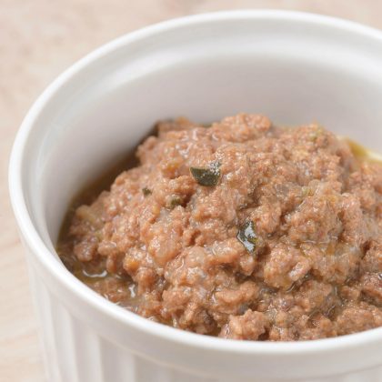 【ビオリオーブで、パートナーの食事をもっと楽しく】 種に適切な環境で育った高品質な原材料にこだわり、ドイルの厳しい審査に合格したビオ認定工場で、心を込めて作られたビオフード*。 豊富な種類でカスタマイズしやすく、あなたのパートナーの「ぴったり」が見つかります。 *ビオ認定工場で生産されたフード ■原材料 野馬(正肉)、ズッキーニ*、さつまいも*、ボラージ油*、サイリウム*、ひまわり油*、タラ肝油、海藻*、卵殻パウダー* *印はビオ認定の原材料です。ビオの含有38.1%。 ■成分値 粗タンパク質 8.3%以上、粗脂肪 2.4%以上、粗繊維 0.4%以下、粗灰分 1.7%以下、水分 90%以下 73kcal/100g ■内容量 120g ■原産国 ドイツ ■給与量 この製品は栄養補助食です。主食や手作り食、総合栄養食と一緒に1日に1〜数回に分けて与えてください。給与量を目安に、体格や体質、体調、運動量などに応じて調節してください。 1日の給与量の目安 体重1〜5kg:〜1/2袋、体重5〜10kg:〜1袋 ■注意事項 ・天然の原材料を使用しているため収獲時期や個体差によって、製品の固さや色、香りに差が生じることがありますが、品質に問題はありません。 ・高温多湿や直射日光を避け、常温で保管してください。 ・開封後は冷蔵庫で保管し、早めに使い切ってください。 ・割合はあくまでも目安です。完全な栄養バランスをお約束するものではありません。 ・賞味期限はパッケージ裏面に、「日日/月月/西暦年」の順で記載しています。 ・成分値は目安です。 ■保存方法 ・冷暗所で保存してください。 ・開封後は冷蔵庫で保存し、2〜3日以内に使い切ってください。 ・製氷皿などで小分け冷凍すると便利にお使いいただけます。