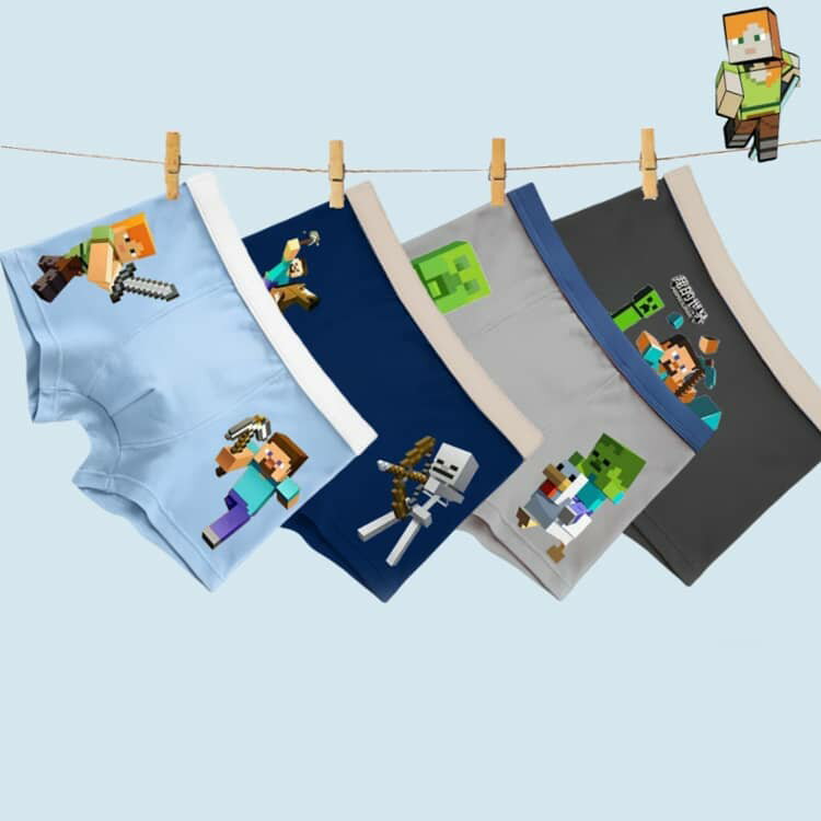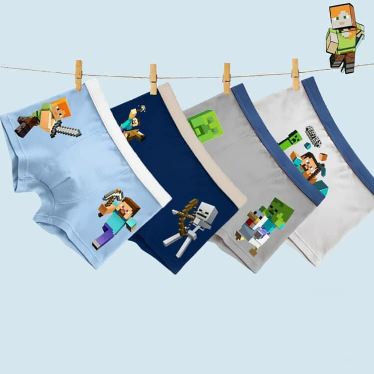 4枚セット ボクサーパンツ マインクラフト風 子供 ブリーフ 100-150cm 綿 肌着 ウルトラクール 男児 キッズ 下着 子ども用 パンツ トランクス キッズパンツ ショーツ ボーイズ キャラクター こども 小学生 通園 通学 子供服 ジュニア 子供下着 棉