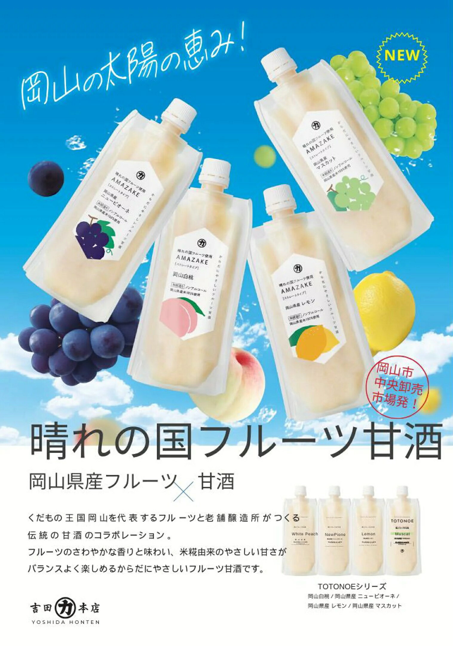 クール便送料無料 AMAZAKE 岡山県産ニューピオーネ×6個 180g×6個 甘酒 効果 米麹 糀 フルーツ 健康 美容 岡山 晴れの国 おかやま果実 ストレートタイプ お手軽 発酵食品 免疫 予防 栄養補給 ノンアルコール 滋養強壮 国産 吉田本店
