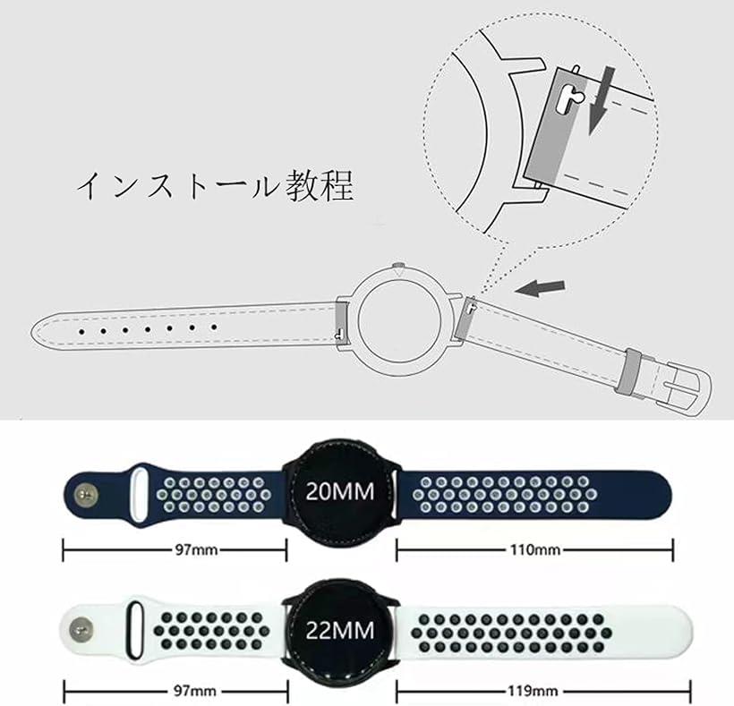 腕時計バンド 多孔通気 シリコンベルト 防水ソフト 快適工具なしで簡単交換 腕時計ベルト 20MM 黒+白 (黒+白, 20MM)