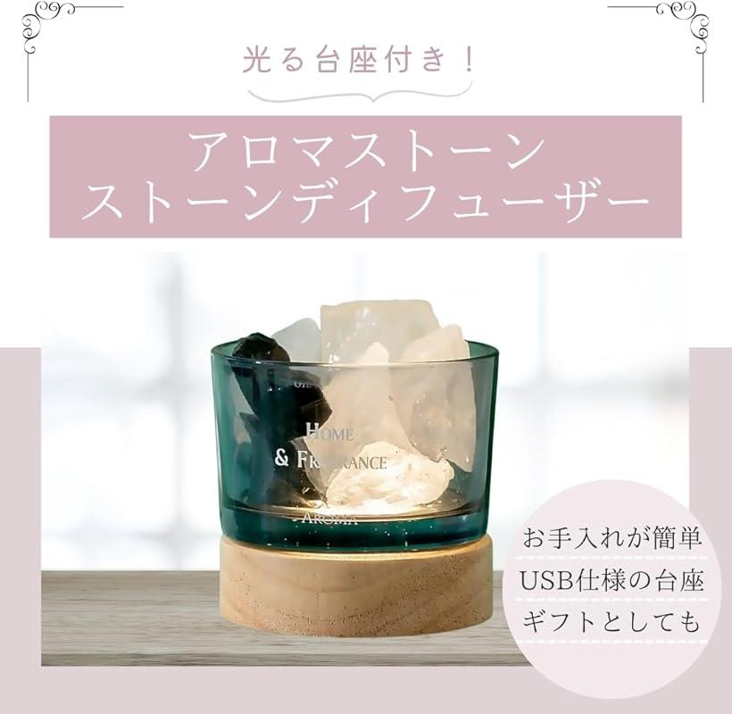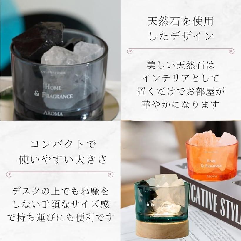 アロマストーン ストーンディフューザー 天然石 アロマオイル エッセンシャルオイル オイルストーン グラス ライト 光る台座(ブラック/光る台座, Free)
