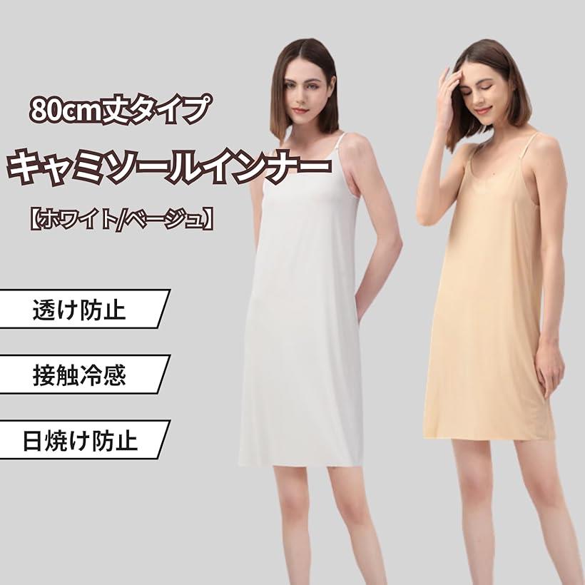 キャミソール スリップ レディース ペチコート 冷感 インナー ワンピース 涼しい 下着 肌着 透け防止 極薄 ひんやり 膝上丈 肩ひも調整 夏 サラデマント ペチワンピ(ベージュ, M)