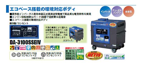 発電機 インバーター発電機 デンヨー Denyo 小型ディーゼル発電機 エコベース DA-3100SSE-IV【送料無料、最安値に挑戦】 メーカー1年保証付