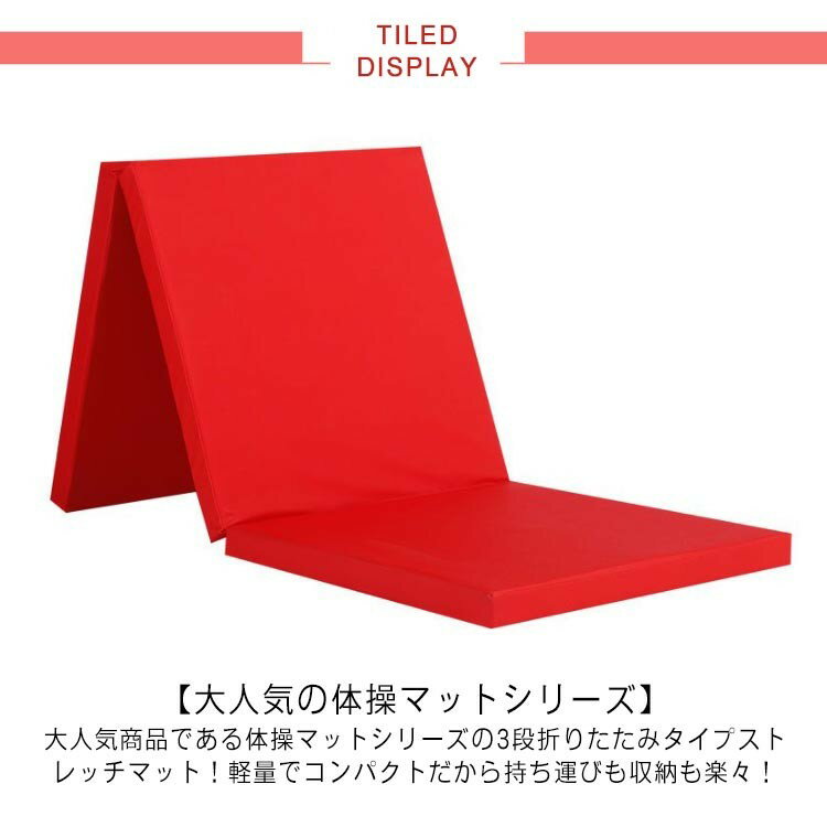 【大人気の体操マットシリーズ】大人気商品である体操マットシリーズの3段折りたたみタイプストレッチマット!軽量でコンパクトだから持ち運びも収納も楽々!ヨガやストレッチはもちろんのこと、筋トレや子供のプレイマットとしてもご利用いただけます。折り畳みスポーツマットを様々なサイズとカラーで取りそろえておりますので、必ず目的の用途に合ったマットが見つかります! 【幅広い用途と納入実績】体操マットシリーズは高反発タイプなのでマットの上に立ち上がっても安定感があります。そのため使用用途としては、ストレッチやヨガ、筋トレをはじめとしたエクササイズはもちろんのこと、子供の器械体操やダンス、プレイエリアのマットとしてもご利用いただけます。実際にトレーニングジムや個人ジム、幼稚園、保育園、養護施設や老人ホームなどでも広くご利用いただいており、ご家庭においても幅広くお使いいただいております。サイズフリーサイズについての説明180x60x5cm 上記サイズは平置き実寸になります。サイズ表の実寸法は商品によって1-3cm程度の誤差がある場合がございます。素材PUレザー色ライトピンク ライトブルー レッド ピンク パープル ブルー グリーン イエロー ブラック備考サイズ詳細等の測り方はスタッフ間で統一、徹底はしておりますが、実寸は商品によって若干の誤差(1cm~3cm )がある場合がございますので、予めご了承ください。 製造ロットにより、細部形状の違いや、同色でも色味に多少の誤差が生じます。 パッケージは改良のため予告なく仕様を変更する場合があります。 ▼商品の色は、撮影時の光や、お客様のモニターの色具合などにより、実際の商品と異なる場合がございます。あらかじめ、ご了承ください。 ▼生地の特性上、やや匂いが強く感じられるものもございます。数日のご使用や陰干しなどで気になる匂いはほとんど感じられなくなります。 ▼同じ商品でも生産時期により形やサイズ、カラーに多少の誤差が生じる場合もございます。 ▼他店舗でも在庫を共有して販売をしている為、受注後欠品となる場合もございます。予め、ご了承お願い申し上げます。 ▼出荷前に全て検品を行っておりますが、万が一商品に不具合があった場合は、お問い合わせフォームまたはメールよりご連絡頂けます様お願い申し上げます。速やかに対応致しますのでご安心ください。メーカー希望小売価格はメーカーカタログに基づいて掲載していますスポーツマット 極厚5cm 体操マット ライトピンク ライトブルー レッド ピンク パープル ブルー グリーン イエロー ブラック