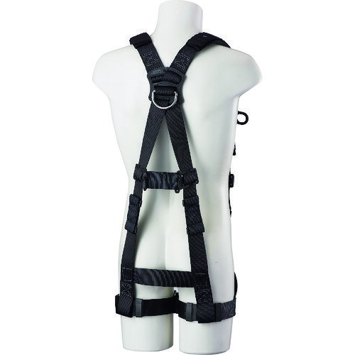 【特長】・身体の動きに応じてベルトがスライドします。・腿部の束縛感が少なく、鳶職をはじめとする建設業にお勧めのモデルです。・建設、土木、造船、橋梁、鉱山、工場、プラント、その他。【仕様】 ・サイズ:M・色:ブラック・腿バックル:ワンタッチ・ベルト幅(mm):45・最大使用可能質量(kg):130・胸ベルト幅(mm):25・厚生労働省「墜落制止用器具の規格」適合品・休止フック掛け付・胴ベルトなし・簡易肩パッド付・肩・腿ベルト幅:45mm・背中ベルト:X型・腿ベルト:水平型・胸バックル:ワンタッチ【注意】 #フルハーネス 各種 セット品 墜落制止用器具 ランヤード等 多数取扱