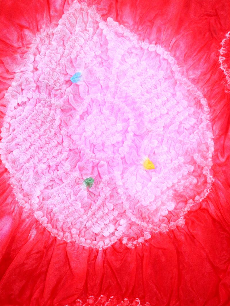子供 ゆかた 帯 No.38 赤地・ピンク絞り(3m)
