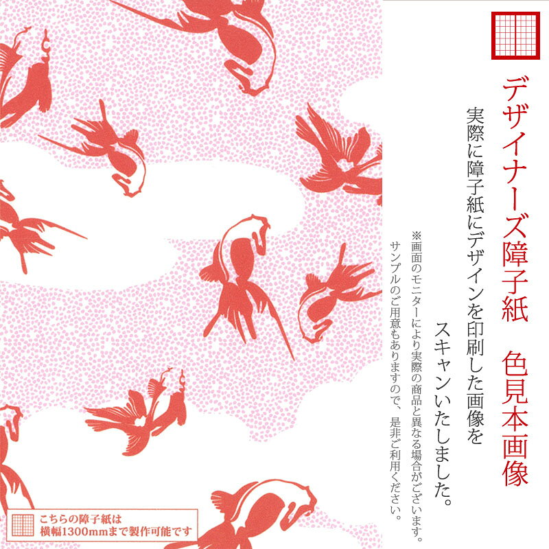 障子紙 おしゃれ モダン 和モダン 破れにくい 強い 強化 丈夫 サイズ オーダー 和 和柄 和風 カラー 和室 窓 障子 貼替え 張替え デザイン 色 柄 シンプル 赤 [ 金魚 ピンク ]