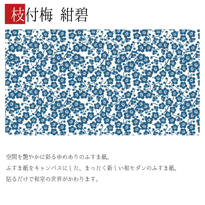 ふすま紙 襖紙 襖 おしゃれ モダン 和モダン サイズ オーダー 和 和柄 和風 カラー 和室 押入 物入 貼替え 張替え デザイン 伝統 文様 シンプル パターン [ 枝付梅 紺碧 ]
