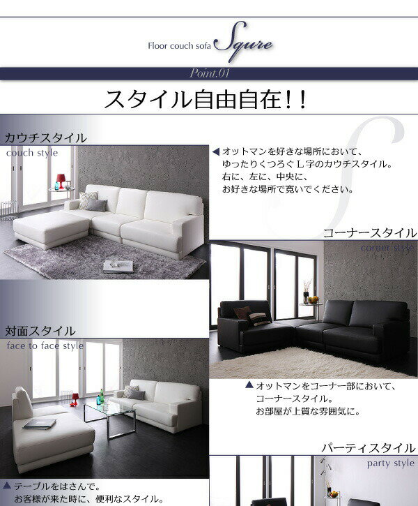 コーナーカウチソファ レイアウト自由!フロアカウチソファ オットマン
