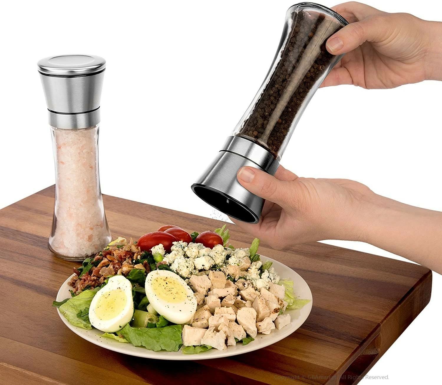 こしょう挽き 胡椒挽き ソルトミル 粗さ調節可能 胡椒製作器2点セット 胡椒料理用品 胡椒ミル岩塩ミル