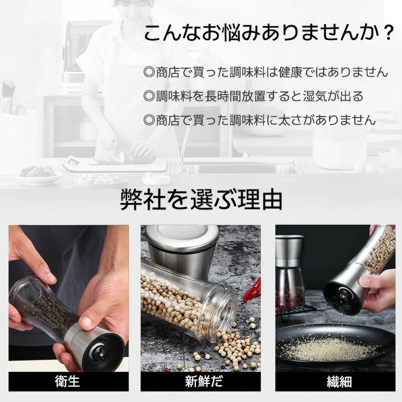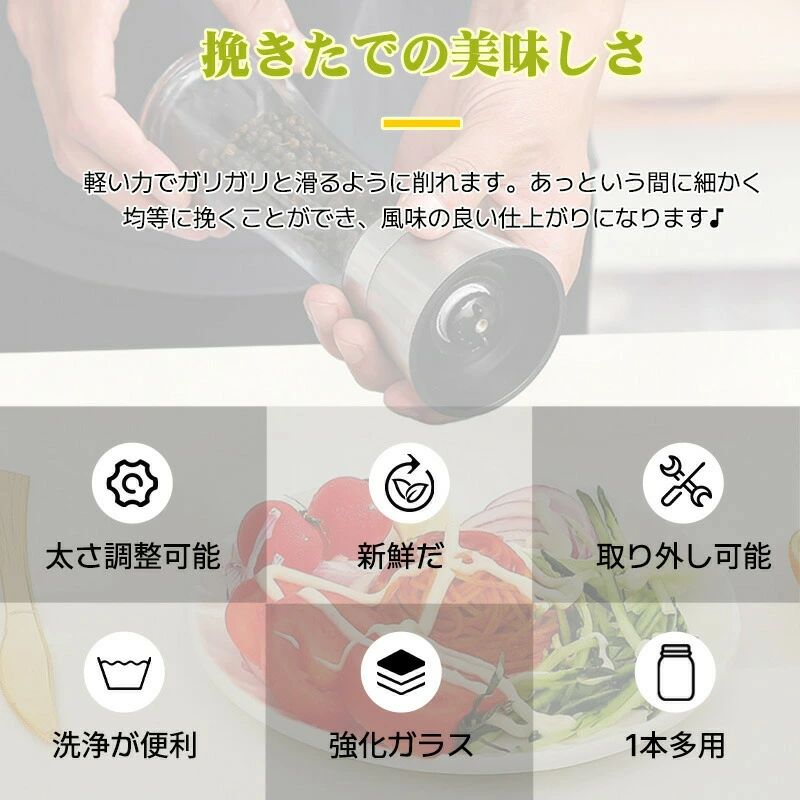 こしょう挽き 胡椒挽き ソルトミル 粗さ調節可能 胡椒製作器2点セット 胡椒料理用品 胡椒ミル岩塩ミル