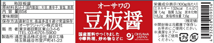 オーサワの豆板醤85g★国産100%★無添加豆板醤★送料無料・1個です。