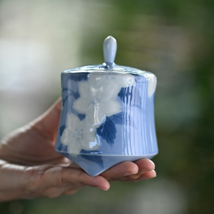 陶芸家:本多亜弥さんの美しい造形と染付、そして彫で描く香炉。 濃淡で描かれる絵付けと彫は、器に奥行きを感じさせる作品。 空間をモダンにコーディネイトする逸品。 ■素材 磁器 ■サイズ 径約8.5cm 高さ約11.5cm ■手触り つるっとしています。 ■重量 約330g ■生産国 Made in Japan本多亜弥/Aya Honda (Japan,Nara 1977 - ) 1977年 奈良県天理市生まれ。 1996年 奈良県立奈良高等学校卒業。 2001年 愛知県立芸術大学陶磁科卒業。 2003年 同大学 大学院終了 。 2003年 奈良県天理市に築窯。 加藤作助氏、太田公典氏、両氏に師事。 入賞 入選暦 2000年 第二回 染付公募展初入選(第三回入選)。 2001年 第三十二回 東海伝統工芸展初入選( 第三十三回入選)。 2002年 第四十九回 日本伝統工芸展初入選(第五十回、五十四回入選)。 2003年 第三十四回 東海伝統工芸展 日本工芸会賞受賞。 2004年 第三十三回 日本伝統工芸近畿展入選(以後、毎年入選)。 2010年より 日本工芸会正会員。