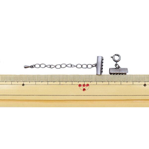 手芸金具 『引輪7mm×リボン止15mmセット ブラック』 オリジナルのアクセサリー作りに アクセサリー作りに必要な留具のセットです。 [アクセサリー ネックレス 引き輪 リボン止め リボン留め 黒] ◆セット内容:引輪7mm×1個、リボン止15mm×2個、テール鎖×1個 ※モニターによって実物のお色と若干異なる場合がございます。 【手芸用品・毛糸・生地の専門店 ユザワヤ】