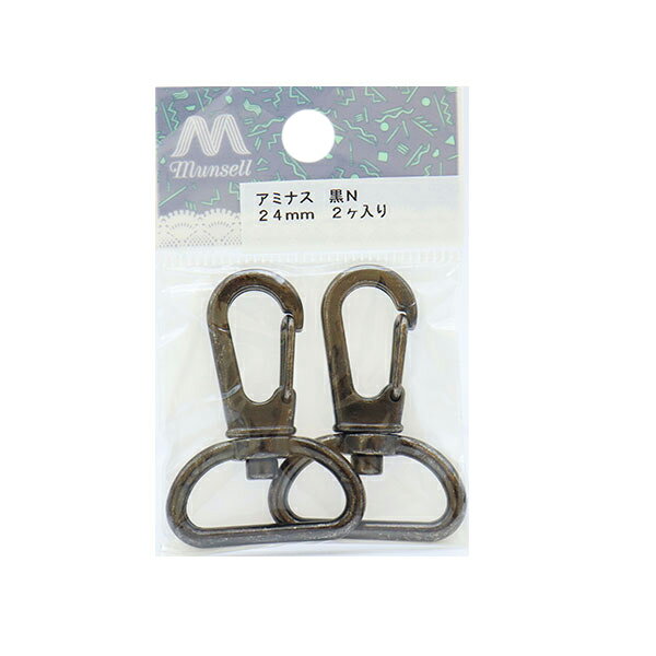 レザー金具 『アミナスカン 2.4cm 黒ニッケル 2個入り』 革小物作成に♪ フックが回転してねじれないので、アクセサリーパーツやキーホルダーの留め具、鞄の肩掛け紐などにおすすめです。 [手芸パーツ クラフトパーツ レザークラフト 持ち手金具 バック ストラップ キーケース ブラック シルバー 黒 銀] ◆サイズ:2.4cm ◆カラー:黒N(黒ニッケル) ◆入数:2個入り ※モニターによって実物のお色と若干異なる場合がございます。 【手芸用品・毛糸・生地の専門店 ユザワヤ】