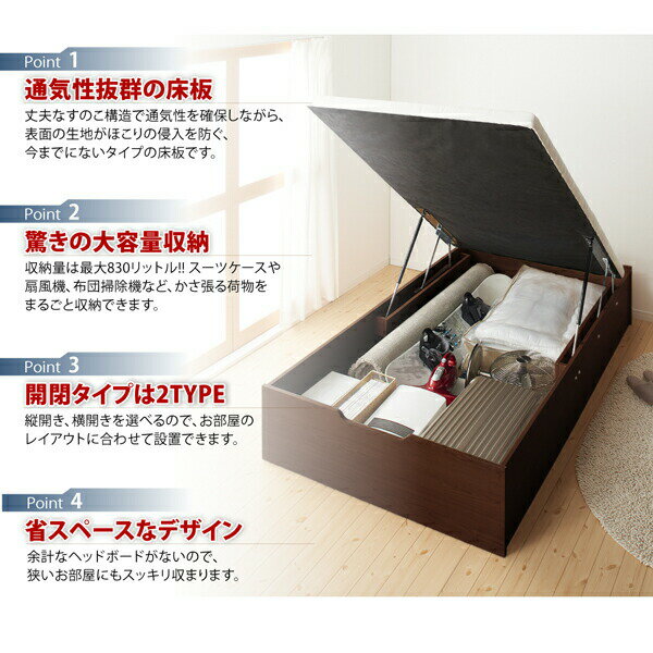 跳ね上げベッド ベッド 収納付きベッド シングルベッド ベッドフレーム すのこベッド ベット 収納 収納付き 収納ベッド 薄型スタンダードポケットコイルマットレス付き 横開き シングル 深さラージ 組立設置付