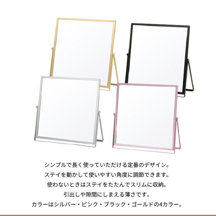 【値下げ】卓上ミラー アルミフレーム おしゃれ 角度 調整 鏡 スクエア 飛散防止 シンプル
