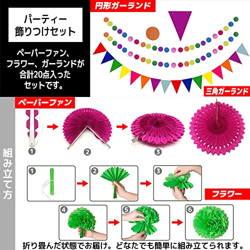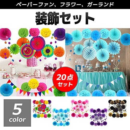 [FUPUTWO] パーティー飾り付け セット ペーパーファン フラワー ガーランド イベント 装飾 (レインボー)