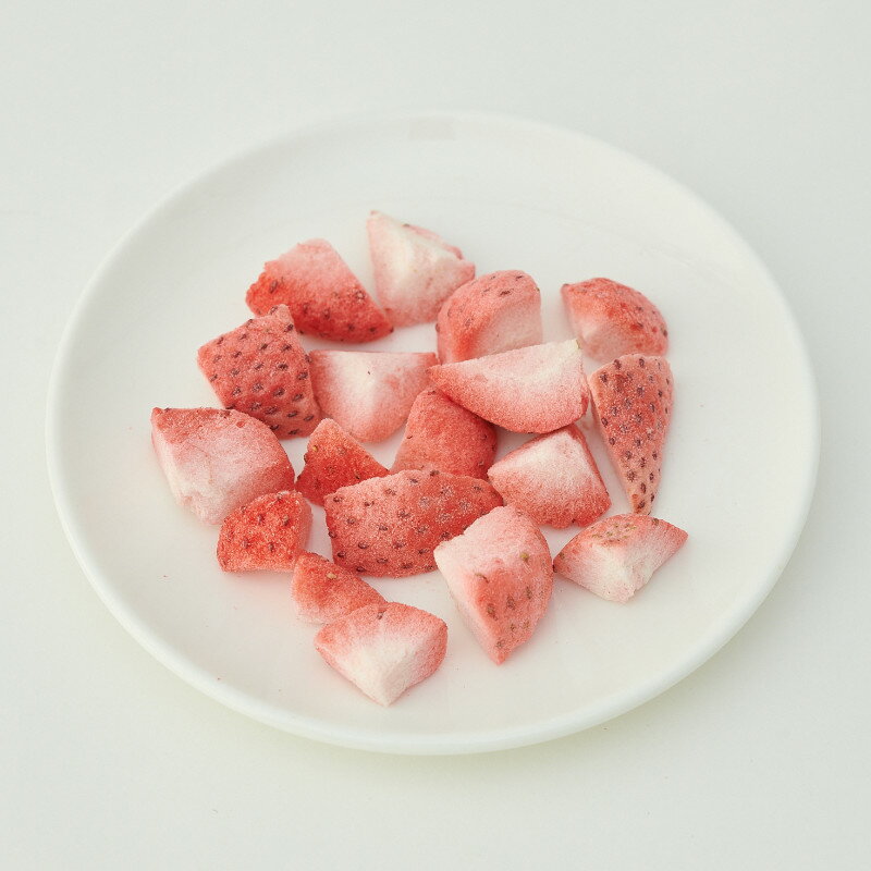 ■商品説明■ 秋田県産のいちごをフリーズドライにしたご褒美おやつ 秋田県産のいちごをフリーズドライ加工しました。フリーズドライにすることでサクッとした食感といちごのビタミンCが楽しめます。おやつやご褒美にもおすすめです。 ・サクッとした食感が美味しいおやつです。 ・ビタミンCが豊富に含まれているので、ご褒美やデザートにしてもおすすめです。 ■商品分類■ 犬用おやつ ■内容量■ 10g ■原材料■ いちご(秋田産) ■成分値■ 粗タンパク質:8.6%以上、粗脂肪:0.8%以上、粗繊維:13.6%以下、粗灰分:4.9%以下、水分:3.0%以下 ■代謝エネルギー■ 330kcal/100g ■注意事項■ ・同封の脱酸素剤は食べられません。 ・高温・多湿は避けて保存してください。 ・開封後はお早めにお召し上がりください。 ・天然素材を使用している為、色、形、大きさにバラツキが生じることがあります。 ・年齢・体重・体調を考慮して適量をお与えください。 ■生産地■ 日本:秋田県産