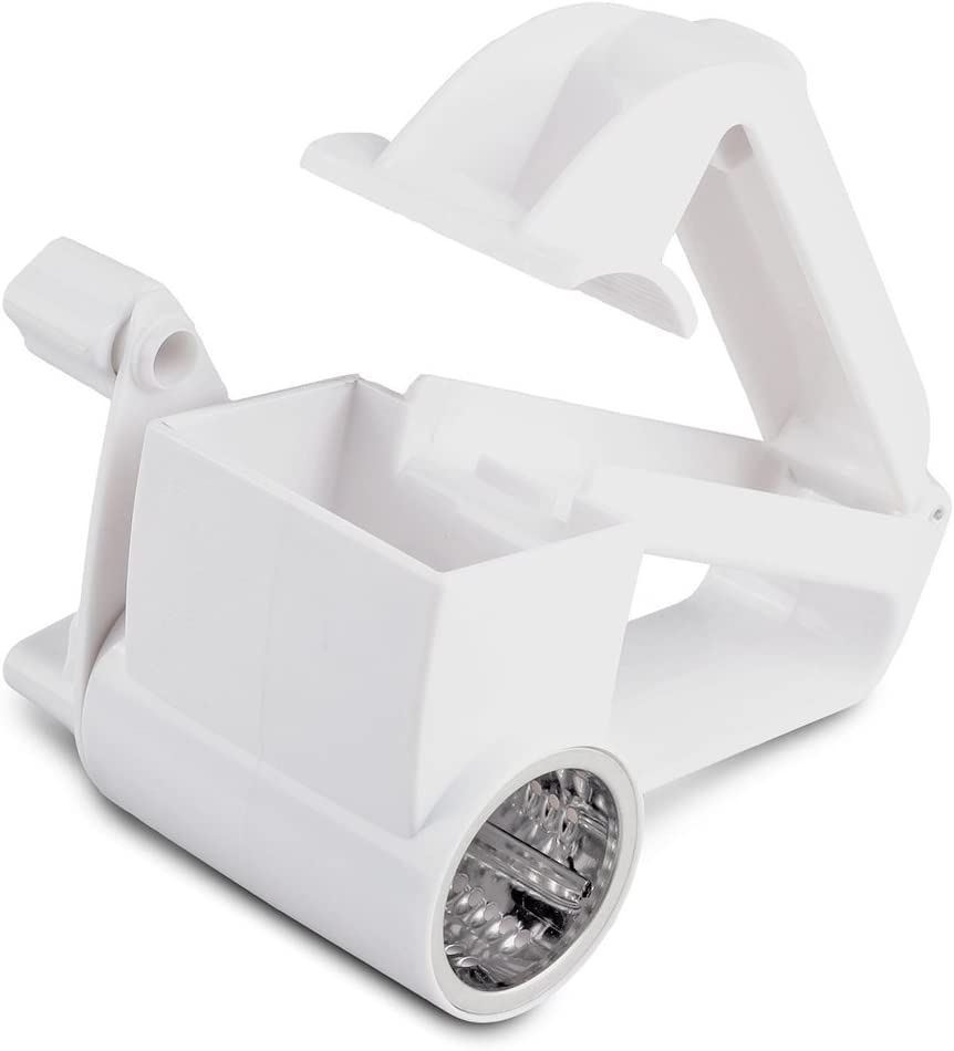 チーズおろし器 回転式 ロータリー チーズグレーター チーズ卸器 チョコレート大根おろし レモン ジンジャー や食パン じゃがいもなどにも多機能 サラダ用 便利なキッチン用品 製菓道具 シンプル 北欧 スタイル ホワイト