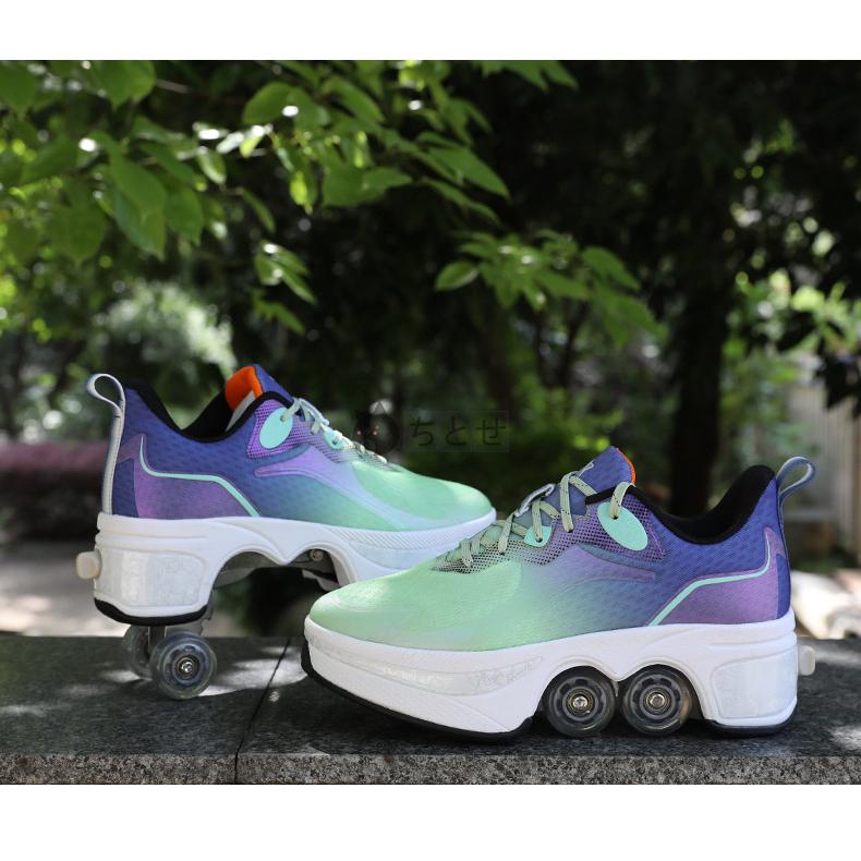 ローラーシューズ 4輪 ローラースケート ローラースニーカー 通気性 初心者 子供 大人 スニーカー 靴 スポーツ ジュニア 格納式で変形ローラースケート スケート 大きいサイズ 男女 子供 プレゼント おしゃれ 男女兼用 遊園地
