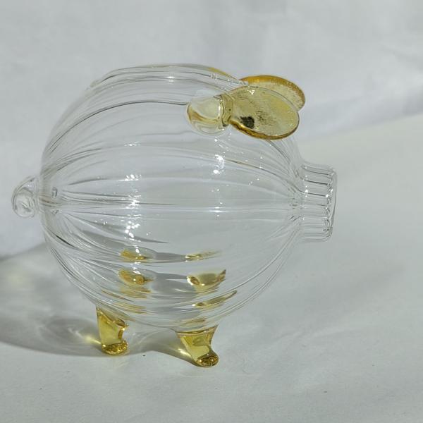 ガラス製豚貯金箱 ノベルティ動物貯金箱 カフェ装飾 家庭用 金色の長い口