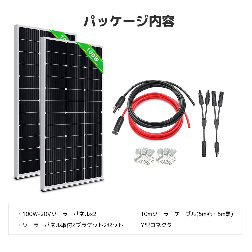 (リョクエン)200W ソーラーパネル 単結晶 100W×2枚組 高性能 次世代型 発電キット: 2個 太陽光パネル 100Wソーラーパネル + 10mソーラーケーブル(5m 赤・5m 黒)+ソーラー パネル取付 Z ブラケット 2セット+ Y 型コネクター 12v 省エネルギー 船舶 屋根