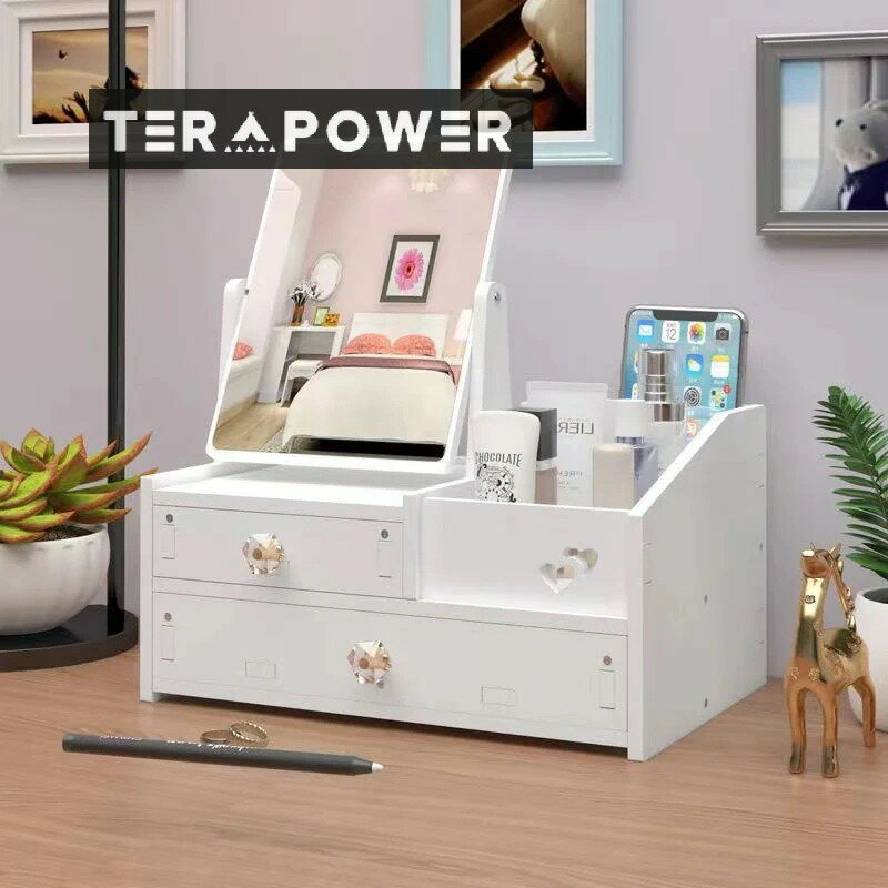 ネットの赤い化粧品の収納箱は鏡の引き出し式のデスクトップを持って化粧台のスキンケアの口紅のアクセサリ