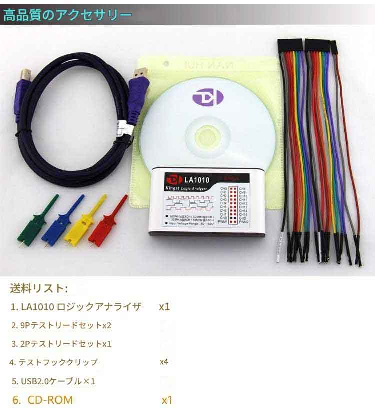 Kingst LA1010 USB ロジック アナライザ 100M 最大 サンプルレート 16チャンネル 10Bサンプル MCU ARM FPGA デバッグツール ソフトウェア