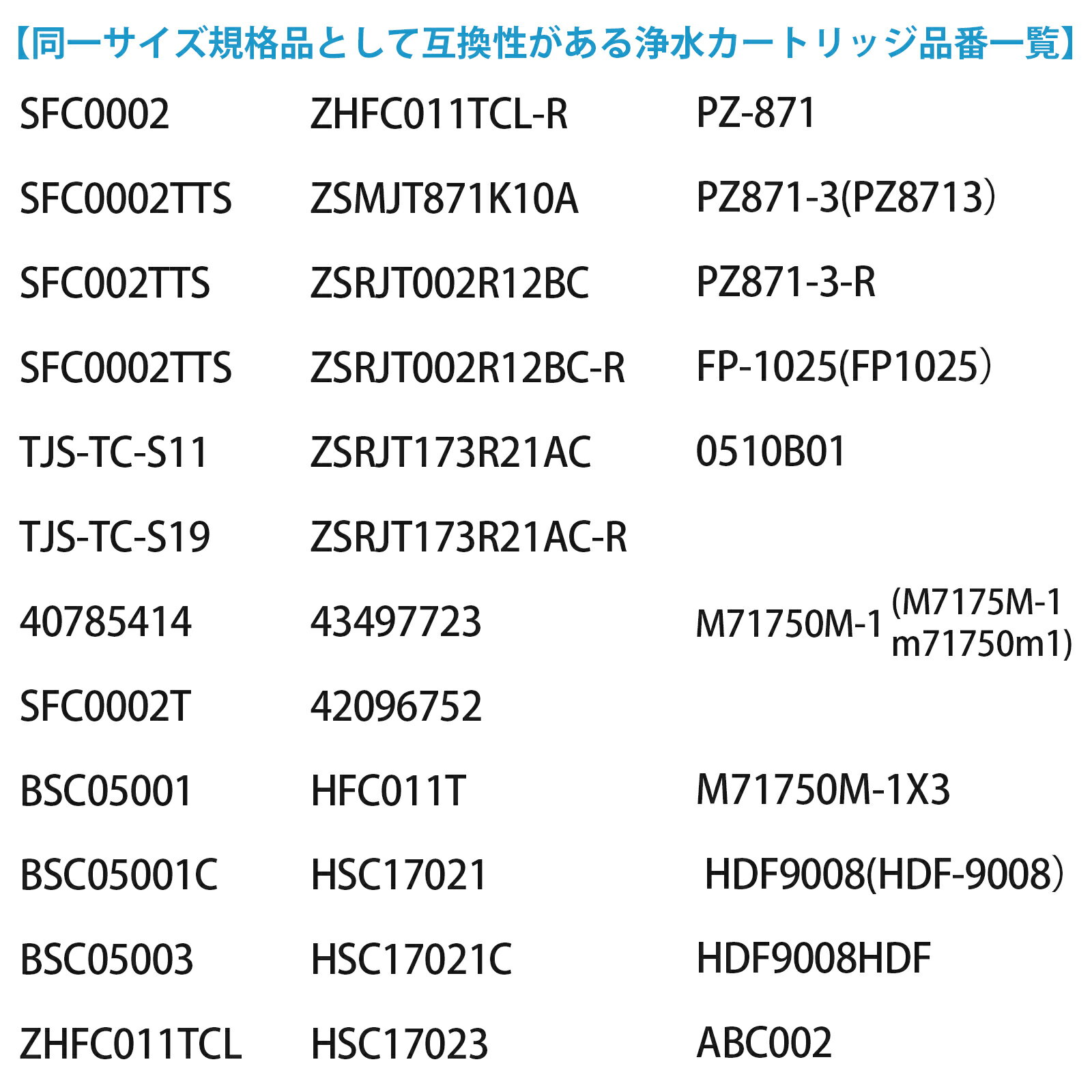 商品の説明: ■【純正品ではなく互換品です】三栄 浄水器付水栓用浄水器 交換用浄水カートリッジ M71750M-1の互換性のある商品 ■【同一サイズ規格品として互換性がある浄水カートリッジ品番一覧】SFC0002、SFC0002TTS、SFC002TTS、SFC0002TTS、TJS-TC-S11、TJS-TC-S19、40785414、 SFC0002T、BSC05001、BSC05001C、BSC05003 、 ZHFC011TCL、ZHFC011TCL-R、ZSMJT871K10A、ZSRJT002R12BC、ZSRJT002R12BC-R、ZSRJT173R21AC、ZSRJT173R21AC-R、 43497723、42096752、HFC011T、HSC17021、HSC17021C、HSC17023 PZ-871 、PZ871-3(PZ8713)、PZ871-3-R 、 FP-1025(FP1025)、0510B01、 M71750M-1(M7175M-1、m71750m1)、M71750M-1X3 、 HDF9008(HDF-9008)、HDF9008HDF、 ABC002 ■【M71750M-1 適用浄水器内蔵水栓】JS-K87580JK-13、JS-K87580JV-13、K87580E1JK-13、K87580E1JV-13、K87580EJK-13、 K87580EJK-BHT、K87580EJK-BHTA、K87580EJK-HT、K87580EJK-HTA、K87580EJV-13、K87580EJV-BHT、 K87580EJV-BHTA、K87580EJV-HT、K87580EJV-HTA、K87580JK-1-13、K87580JK-13、 K87580JK-13#C、K87580JV-1-13、K87580JV-13、K87580JV-13#C、K87580JV-N-、K87580JV-SW、 K87580JV-SW-SK、K8758JK-RJ、K8758JV-13、K8758JV-13#C、K8758JV-13-GL、 K8758JV-13-LM、K8758JV-13-VH、K8758JV-RJ、K8758JV-RJ-DK、K8758JV-RJ-SO、K8758JV-RJ-TO、F402BKW、F-402BKW、F402BKWK ■【11+1物質除去】遊離残留塩素、濁り、溶解性鉛、CAT(農薬)、2-MIB(カビ臭)、テトラクロロエチレン、トリクロロエチレン、陰イオン界面活性剤、ベンゼン、ジェオスミン、フェノール類、PFOS及びPFOA ■【交換の目安】約4ヶ月(10L/日使用した場合)を目安としていますが、吐水量が減少したり、においや味がする場合は交換が必要です。使用水量・水質・水圧によって大幅に短くなることがあります。 材料の種類: ABS樹脂 ろ材の種類: 活性炭、不織布 ろ過流量: 2.5L/分 M71750M-1 適用浄水器内蔵水栓: JS-K87580JK-13、JS-K87580JV-13、K87580E1JK-13、K87580E1JV-13、K87580EJK-13 K87580EJK-BHT、K87580EJK-BHTA、K87580EJK-HT、K87580EJK-HTA、K87580EJV-13 K87580EJV-BHT、K87580EJV-BHTA、K87580EJV-HT、K87580EJV-HTA、K87580JK-1-13 K87580JK-13、K87580JK-13#C、K87580JV-1-13、K87580JV-13、K87580JV-13#C K87580JV-N-、K87580JV-SW、 K87580JV-SW-SK、K8758JK-RJ、K8758JV-13 K8758JV-13#C、K8758JV-13-GL、 K8758JV-13-LM、K8758JV-13-VH、K8758JV-RJ K8758JV-RJ-DK、K8758JV-RJ-SO、K8758JV-RJ-TO、F402BKW、F-402BKW、F402BKWK 同一サイズ規格品として互換性がある浄水カートリッジ品番一覧: SFC0002、SFC0002TTS、SFC002TTS、SFC0002TTS、TJS-TC-S11、TJS-TC-S19、40785414、 SFC0002T、BSC05001、BSC05001C、BSC05003 、 ZHFC011TCL、ZHFC011TCL-R、ZSMJT871K10A、ZSRJT002R12BC、ZSRJT002R12BC-R、ZSRJT173R21AC、ZSRJT173R21AC-R、 43497723、42096752、HFC011T、HSC17021、HSC17021C、HSC17023 PZ-871 、PZ871-3(PZ8713)、PZ871-3-R 、 FP-1025(FP1025)、0510B01、 M71750M-1(M7175M-1、m71750m1)、M71750M-1X3 、 HDF9008(HDF-9008)、HDF9008HDF、 ABC002 ※毎日の使用開始時は、浄水を30秒以上流してからご使用ください。また、2日以上ご使用にならなかったときは、浄水を1分間以上流してからご使用ください。 ※購入検討商品に関してご不明な点やご不安をお持ちのお客様は、ご購入前にお問い合わせください。