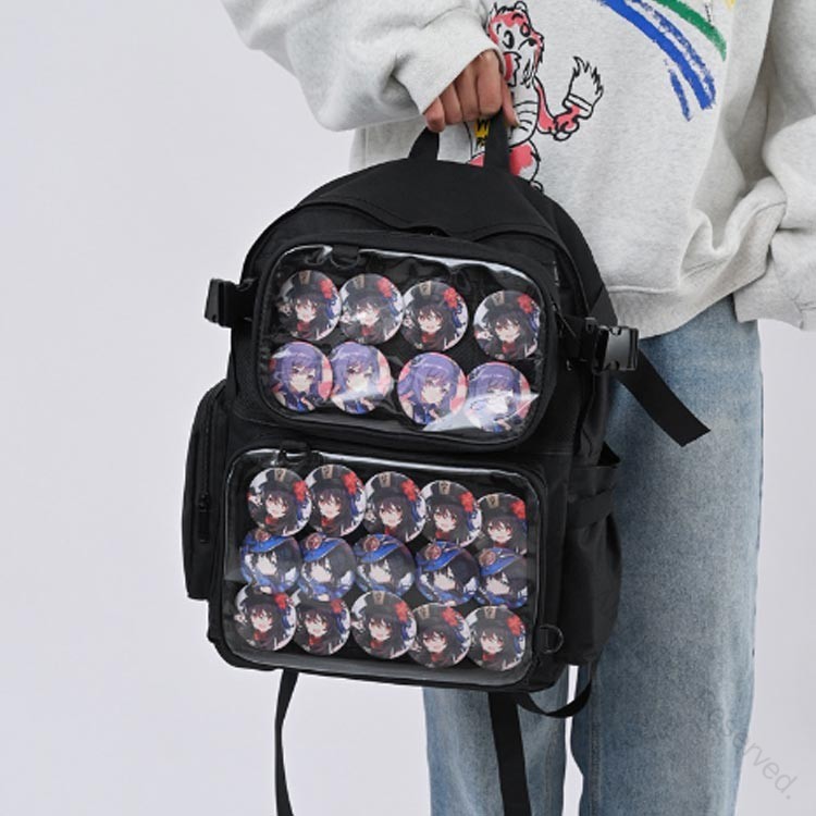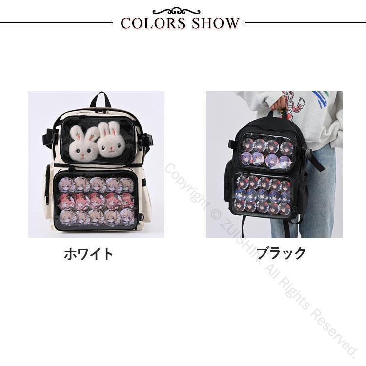 アイドルやアニメの推しイベントで大活躍!上方のミニバッグが取り外し可能の2way痛リュック。フロントに透明ポケットで見せたいアイテムを自由にアレンジできます。好きな芸能人やアニメキャラの写真、缶バッジ、ストラップ、ぬいぐるみ、萌グッズなど入れて一目瞭然です。あんスタやツイステなどの缶バッジをたくさんつけてお出かけしましょう!A4サイズ、雑誌 、ipad、折り畳み傘や本など収納可能ので、通学や出かけにもおススメです。 サイズ2way痛バリュックサイズについての説明リュック30x15x42cm クリアポーチ18x25cm ミニバッグ22x15cm※サイズ表の実寸法は商品によって1-3cm程度の誤差がある場合がございます。素材ナイロン PVC ポリエステル色ブラック ホワイト備考サイズ詳細等の測り方はスタッフ間で統一、徹底はしておりますが、実寸は商品によって若干の誤差(1cm〜3cm )がある場合がございますので、予めご了承ください。製造ロットにより、細部形状の違いや、同色でも色味に多少の誤差が生じます。パッケージは改良のため予告なく仕様を変更する場合があります。▼商品の色は、撮影時の光や、お客様のモニターの色具合などにより、実際の商品と異なる場合がございます。あらかじめ、ご了承ください。▼生地の特性上、やや匂いが強く感じられるものもございます。数日のご使用や陰干しなどで気になる匂いはほとんど感じられなくなります。▼同じ商品でも生産時期により形やサイズ、カラーに多少の誤差が生じる場合もございます。▼他店舗でも在庫を共有して販売をしている為、受注後欠品となる場合もございます。予め、ご了承お願い申し上げます。▼出荷前に全て検品を行っておりますが、万が一商品に不具合があった場合は、お問い合わせフォームまたはメールよりご連絡頂けます様お願い申し上げます。速やかに対応致しますのでご安心ください。大容量 痛バッグ 3way リュック バッグ レディースバッグ バックパック リュック 新登場! ブラック ホワイト 指定された配送時間は承っておりません。【ZUISHIN】